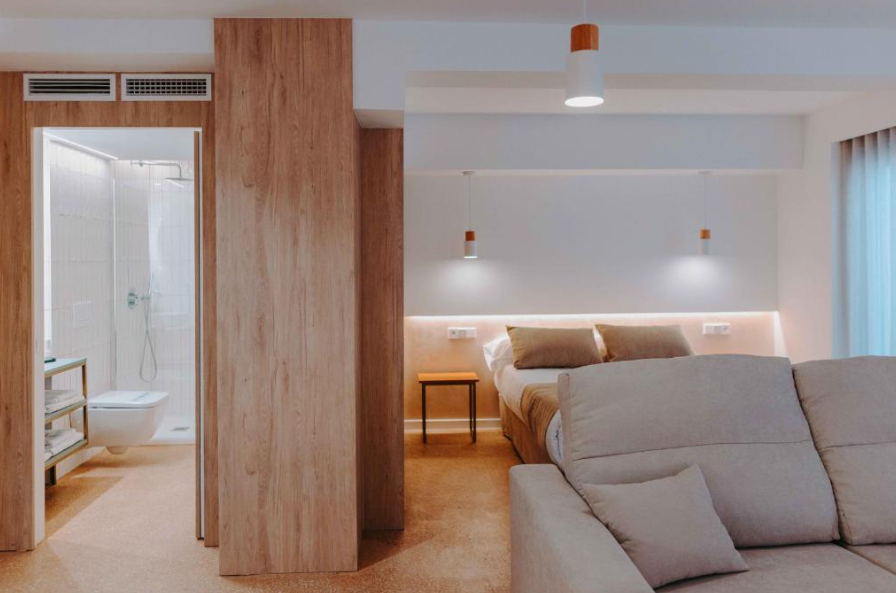 Esta vivienda de planta baja está equipada con aire acondicionado, una cocina completa con zona de comedor, televisor de pantalla plana y un baño privado con ducha, artículos de aseo de cortesía y secador de pelo. Además, dispone de nevera, horno, microondas y cafetera, para disfrutar de todas las comodidades del hogar.